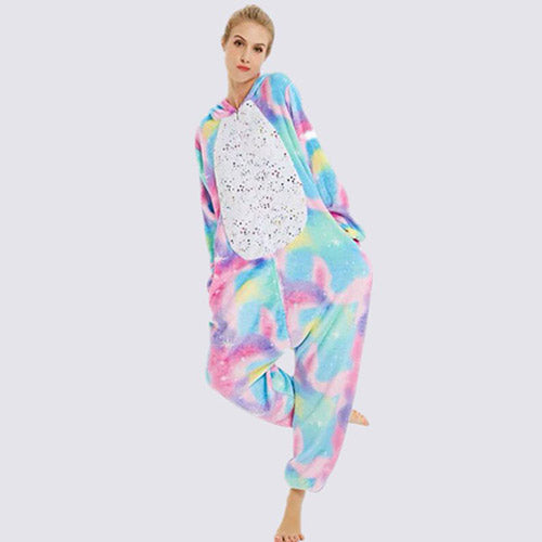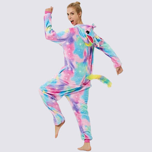 The Unicorn Multicolor Onesie brings an instant playful mood to relaxing evenings while offering a soft sensation that makes downtime feel more enjoyable. Made from smooth polyester, it provides lasting comfort that keeps you warm without feeling heavy. Its vivid visual design adds joyful personality to simple moments spent reading, lounging, or unwinding quietly at home.