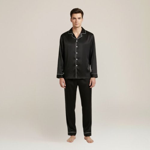 The Black Matching Satin Pajamas For Couples offer a refined way to unwind together at home. Crafted in satin, the smooth fabric highlights a deep black tone that feels chic. The coordinated cut creates matching harmony, blending modern elegance with effortless wear for women and men alike.