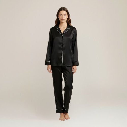 Black Matching Satin Pajamas For Couples : Timeless Nights, Shared Style