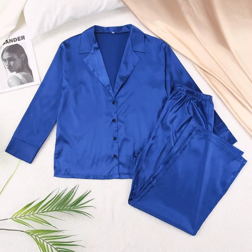 Ruby Blue Satin Pajama – Couture Elegance at Home
