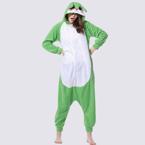 The Green Bunny Onesie is designed to wrap you in warmth while adding a touch of originality. Made from ultra-soft polyester, it’s perfect to keep you warm during winter nights or for relaxing moments at home. Its design inspired by Japanese kigurumi makes this pajama a fun and unique piece.