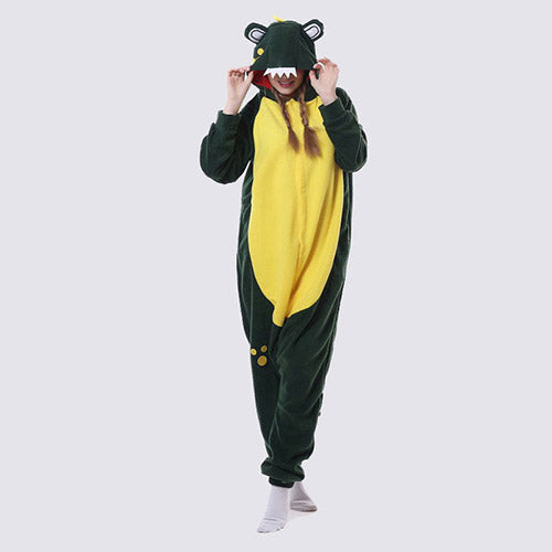 The Crocodile Onesie is the perfect ally for winter nights where comfort and originality go hand in hand. Made from high-quality polyester, it feels soft to the touch and keeps your body at a pleasant temperature. This pajama is ideal for relaxing while staying stylish.