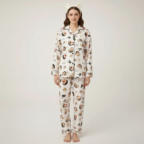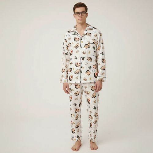 The Anime Dreamer Matching Pajamas for Couples are designed for couples who love to blend fun and tenderness at home. With its cute anime-inspired prints and soft neutral tones, this matching set creates an instant feeling of togetherness. The relaxed fit flatters both women and men, making it easy to feel comfortable while staying visually coordinated. It’s more than sleepwear — it’s a shared style that turns ordinary evenings into moments you’ll want to remember.