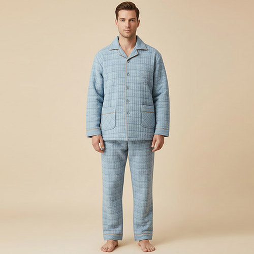 Embrace a soothing atmosphere at home with the Nolan Warm Cotton Men’s Pajamas, designed to make every quiet moment feel special. Its sky-blue check pattern and thick cotton fabric wrap you in gentle warmth, perfect for calm evenings on the sofa, slow mornings over breakfast, or relaxing chapters read in bed. This set creates a comforting cocoon that elevates your everyday rituals with effortless style.