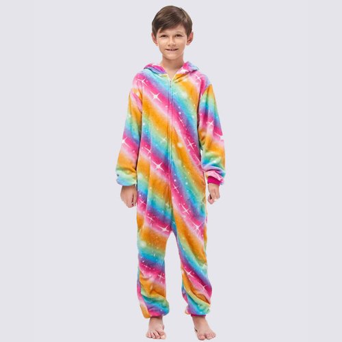 The Starry Boys’ Unicorn Onesie invites your child into a world where colors sparkle and imagination comes alive. Crafted in a soft fleece, it wraps little adventurers in warm comfort while adding a touch of fantasy to their nighttime routine. Its rainbow pattern turns bedtime into a moment of wonder, perfect for children who love magical creatures and vibrant stories.